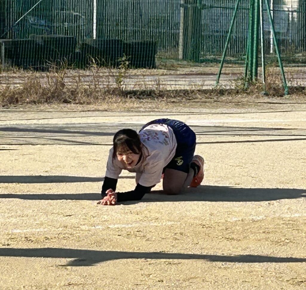 まずは、グランドについた私にコートで挨拶をしてくれます
