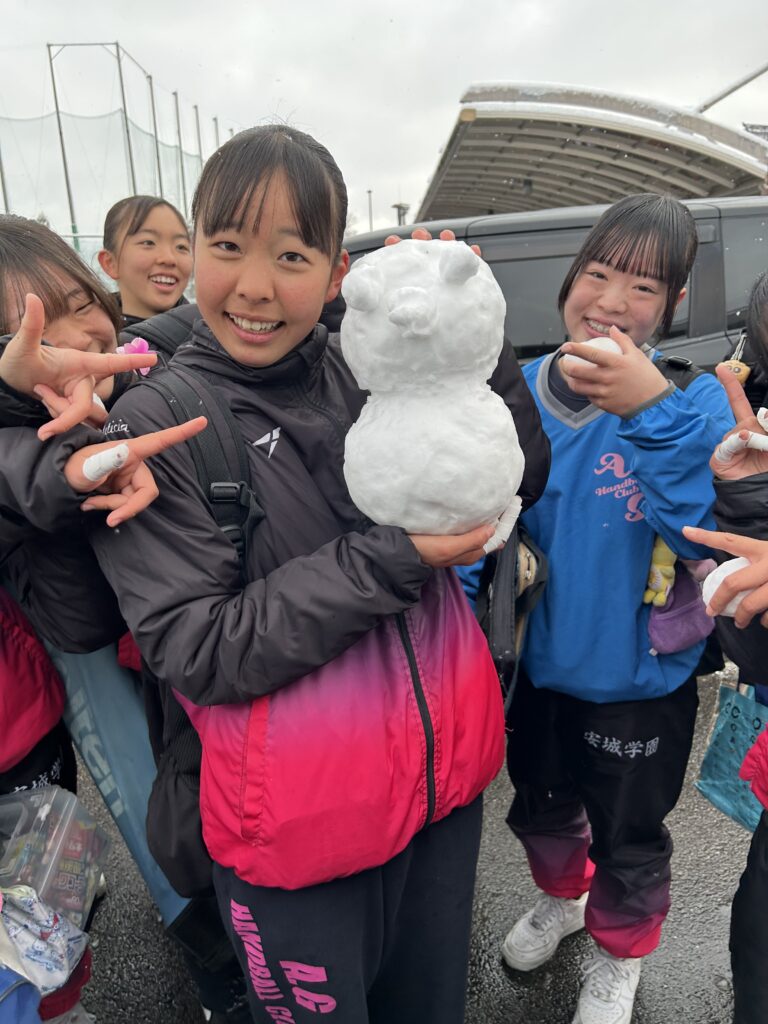 会場もまだ開いていなかったので、みんなは雪合戦&雪だるま作り⛄️