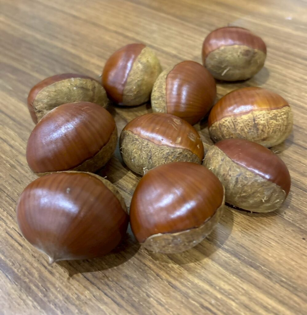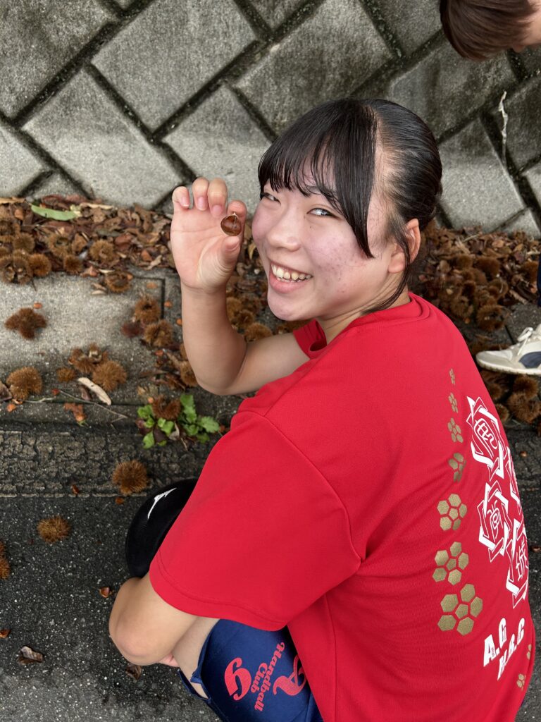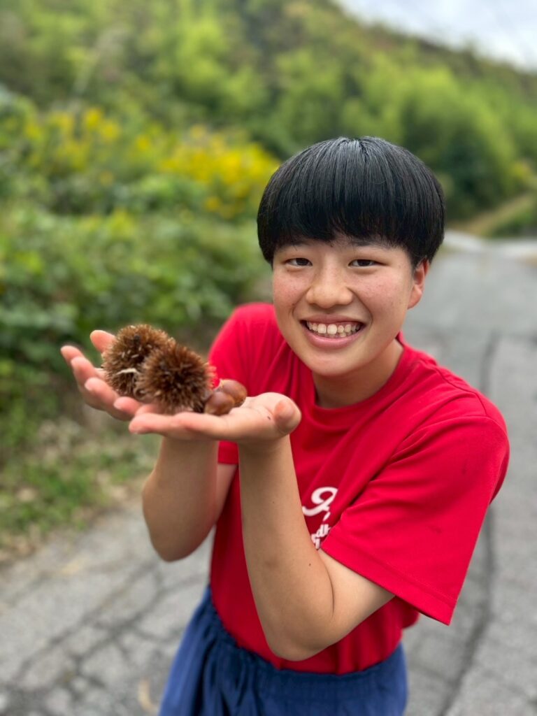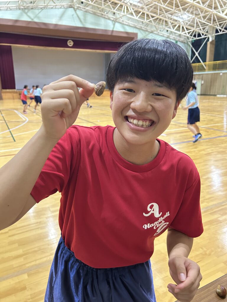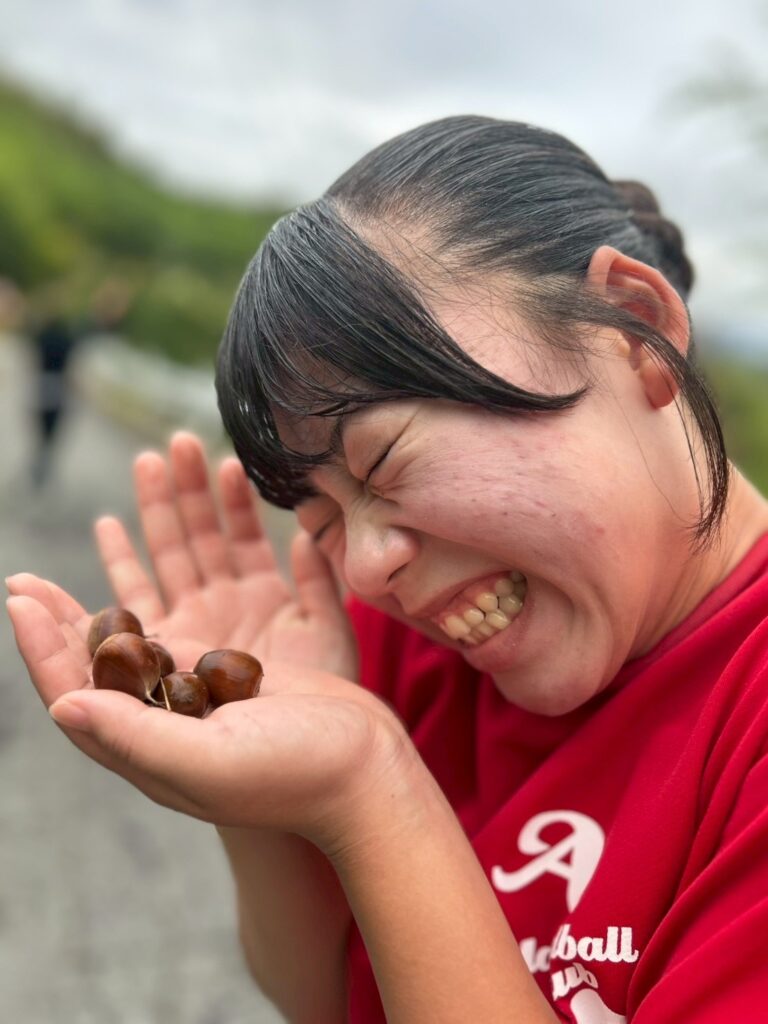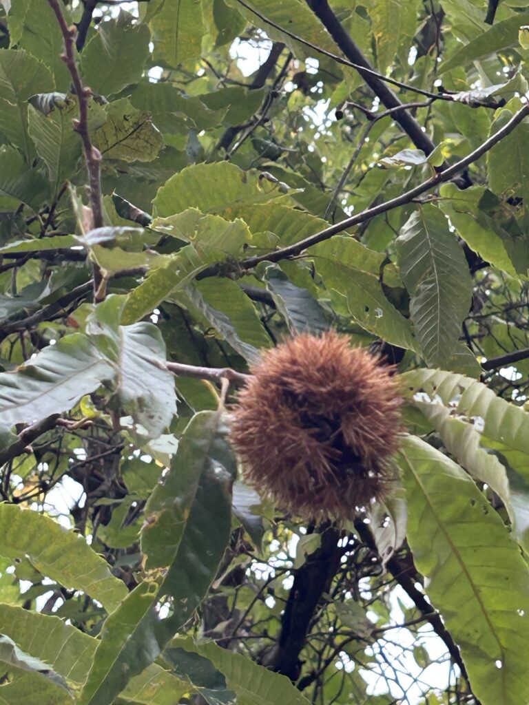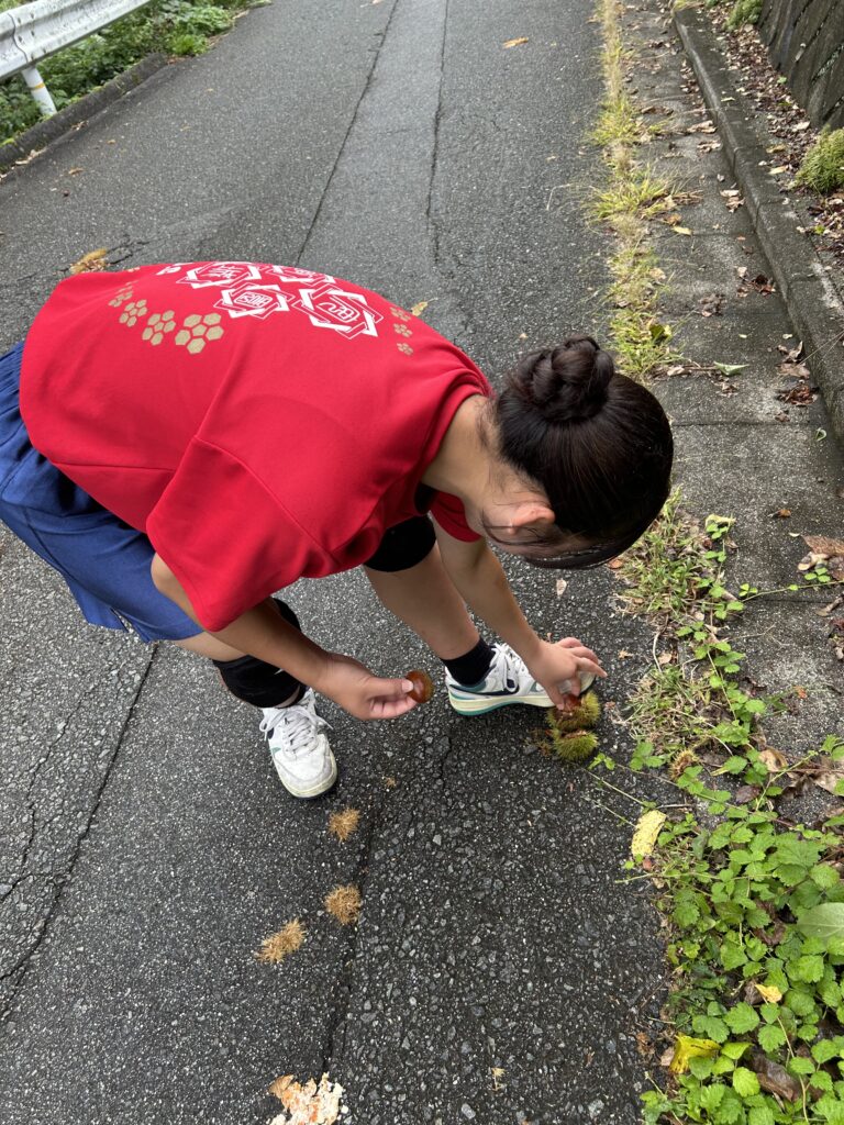 みんなに見せてあげよ!!って持つのですがイガのチクチクが痛すぎて、さらに大はしゃぎ🤣